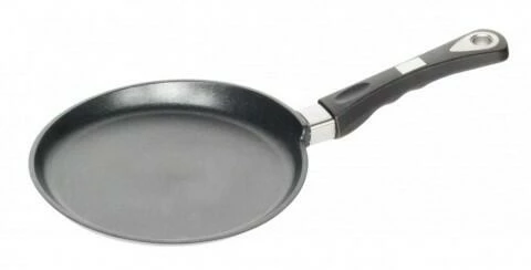 AMT Crepes Pfanne aus Aluguss für Induktion, 24 cm. Die AMT Crepes-Pfanne hat eine speziell flache Form für die einfache Zubereitung von Crepes. Das Werkzeug der Deutschen Köche-Nationalmannschaft.