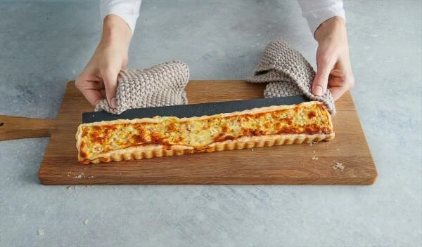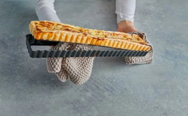 Der dekorative Wellenrand sieht nicht nur hübsch aus, sondern dient auch gleichzeitig als praktische Schneidhilfe. Beide Schnitten ergeben bis zu 24 “Häppli”. Dank des praktischen Hebebodens und der Antihaft-Beschichtung lassen sich die Schnitten ganz einfach und ohne zu brechen aus der