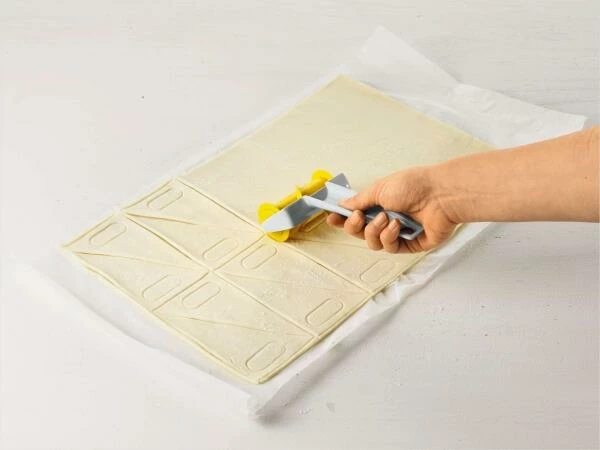 Teigrolle Croissant Roller. Die ideale Hilfe, um schnell und einfach Croissants herzustellen. Einfach über den Teig rollen, Croissant nach Belieben füllen und ab in den Ofen! Für Teigstärken bis 2 mm.