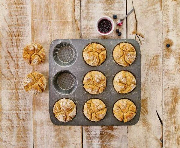 Herrlich duftende, krosse Brötchen, die frisch aus dem Ofen geholt sind und noch lauwarm am Frühstückstisch serviert werden. Das Brötchenblech von Birkmann macht’s möglich! Mit dem Backblech können bis zu 9 selbstgemachte Brötchen gebacken werden. Dank der Antihaftbeschichtung und der Lochungen lassen sich die Brötchen nach dem Backen leicht lösen – ein wenig Einmehlen genügt.