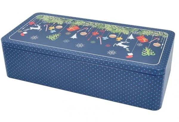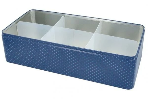 - Lieferumfang: eckige Gebäckdose mit Fächereinsatz