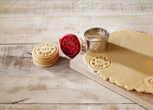 Dieser Desserring hat mit einem Durchmesser von 5 cm genau die richtige Größe für die Mini-Plätzchen-Stempel: Zuerst wird der Teig dick ausgerollt, dann mit dem Dessert- und Speisering ausgestochen und anschließend mit einem Stempel dem Keks eine einzigartige Prägung verliehen. Fertig!