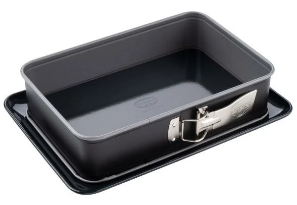 Die Rechteck-Springform mit Emaille-Boden aus dem Dr. Oetker Sortiment “Back-Idee Kreativ” in den Maßen 28x18x7 cm ist perfekt geeignet für Kuchen aller Art.