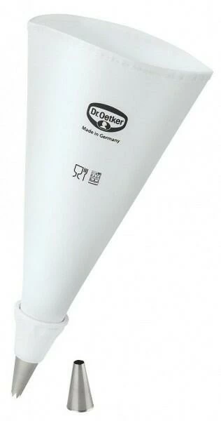 Der Spritzbeutel aus kochfester Baumwolle von Dr. Oetker ist perfekt zum Dekorieren und Verzieren von Cupcakes und anderem Gebäck geeignet. Zusätzlich zu dem Spritzbeutel besteht das Set aus 2 Spritztüllen und einem Universaladapter. Der Spritzbeutel kann auch ohne Adapter mit allen, im Dr. Oetker Sortiment enthaltenen, Tüllen verwendet werden. Falls Sie den Universal-Adapter von Dr. Oetker einsetzen möchten, ist eine kleine Linie zum Kürzen auf dem Spritzbeutel aufgezeichnet. Zusätzlich ermöglicht der Adapter einen leichten Tüllen-Wechsel von außen. Nach der Nutzung kann das Set problemlos in der Spülmaschine gereinigt werden.