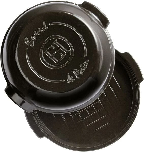 Emile Henry Brotbackform Set in fusain. Die runde Form der Brotbackhaube hat genau den gleichen Effekt wie die Wölbung traditioneller Brotbacköfen, damit das Brot beim Backen den richtigen Feuchtigkeitsgrad bekommt.