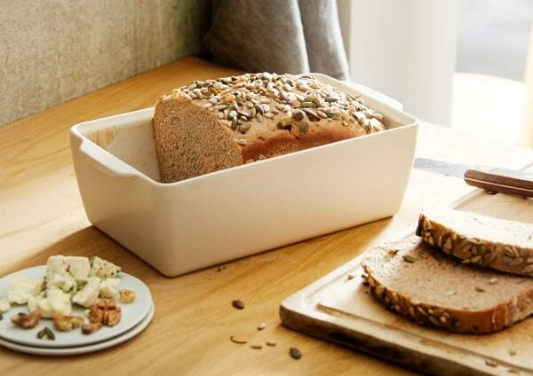 Emile Henry Kasten-Brotbackform in creme. Ideal für selbstgebackene Brote, die innen gut durchgebacken und außen schön knusprig-kross sind.