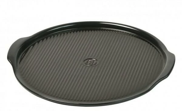 Emile Henry Pizzastein in fusain mit 37 cm Durchmesser. Der runde Pizzastein aus Flame®-Keramik für knusprige Pizzas, Flammkuchen, Fladenbrot, Brot, Brötchen, Ciabatta…wie auf Stein gebacken