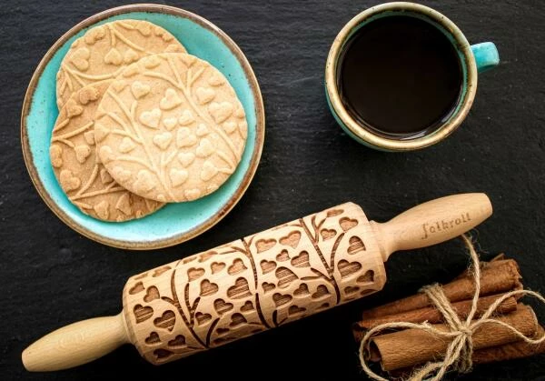 Folkroll Teigrolle Spring Hearts. Mehr als das klassische Nudelholz, nämlich eine Teigrolle mit tollen Mustern und Motiven in 3D-Optik. In 2 Größen erhältlich.