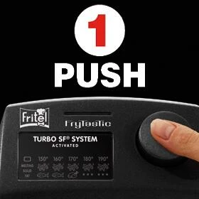 Das TURBO SF System® sorgt für eine bessere Hitzeleitung im Öl. Der Backprozess verläuft bis zu 50% schneller. Da der Frittierprozeß viel schneller verläuft, braten die Pommes Frites schneller an, wodurch diese keine Gelegenheit mehr bekommen, Frittierfett oder Frittieröl zu absorbieren. Frisch geschnittene Pommes Frites oder tiefgefrorene Pommes Frites enthalten eine große Menge Wasser. Weil das spezifische Gewicht von Wasser schwerer ist als das des Öls, sinkt es bei einer Fritteuse mit « Kalter Zone » auf den Boden des Topfes. Dort wird das Wasser durch die Erhitzung in Dampf umgesetzt, der das Volumen bis zu 80-mal vergrössert. Dieser Dampf steigt und versucht zu entweichen, wodurch gefährliche Spritzer entstehen. Das Revolutionäre TURBO SF System® neutralisiert dieses Phänomen vollständig. Dank der ”TURBO SF®” Technik ist es möglich Frittierfett zu schmelzen. Bisher war das problematisch bei Fritteusen mit Kaltzone.