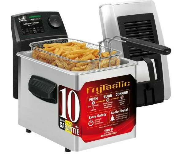 Fritel Fritteuse Turbo SF Frytastic 5371, 4 Liter und 3.200 Watt. Die Fritel Fritteuse Turbo SF 5371 verfügt über das TURBO SF System®, d.h. bis zu 50% schneller frittieren und wesentlich weniger fette Pommes Frites. Die gesündere Art des Frittierens!