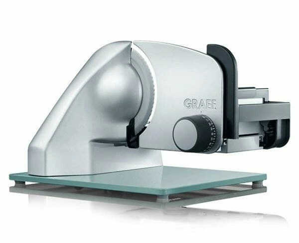 GRAEF Allesschneider CLASSIC 20. Der Vorteil des Freiraumschneiders CLASSIC 20 liegt in seiner selbsttragenden Konstruktion und somit in der extragroßen Bodenplatte. Einfach ein Tablett unter das Messer geschoben, kann das Schneidgut hygienisch einwandfrei aufgefangen werden.