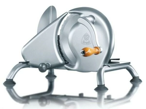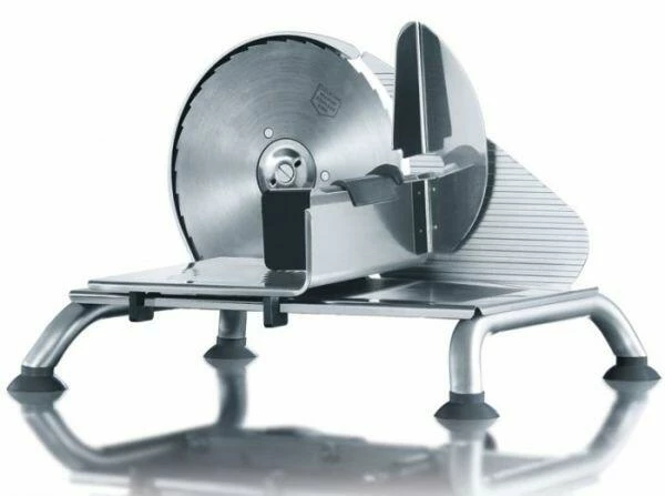 (Nicht nur) Nachtschwärmer können auch von der Manuale H 9 träumen. Der neu aufgelegte Handallesschneider aus den 60er Jahren glänzt durch Optik und beste Schneideeigenschaften per Muskelkraft. Ein 19 cm großes und komplett durchgehärtetes Messer sowie Schlitten und Arbeitstisch aus Edelstahl und darüber hinaus die leichtgängige Kurbel mit Echtholzgriff machen die Maschine zu einem schnittigen Hingucker. Sie schneidet ebenso spielend leicht durch Brot, Wurst und Schinken wie ihre elektrischen “Geschwister”. Die vier Sauggummifüße verleihen der Maschine einen sicheren, festen Stand. Der abnehmbare Edelstahlschlitten ermöglicht eine einfache und schnelle Reinigung.