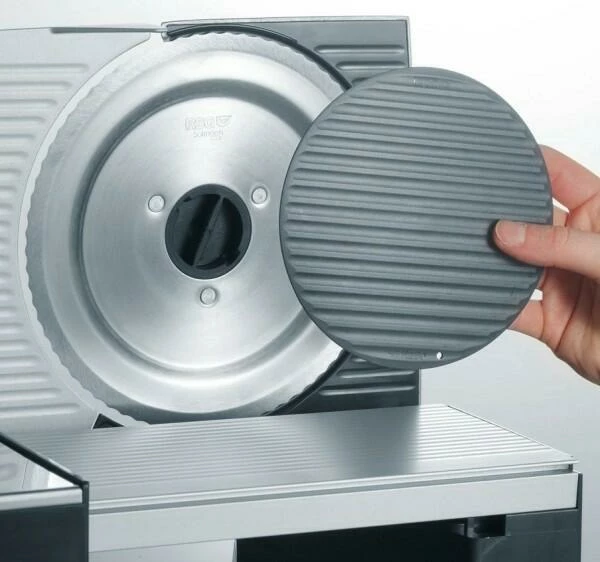 Nicht zuletzt glänzt die Vollmetallmaschine mit hochwertiger Beschichtung durch ihre zeitlose Form, einfache Bedienung und sichere Handhabung. Ein ideales und edles Allesschneider-Modell in modernem Design und mit Unterschrift-Prägung des TV-Kochs Johann Lafer. „Made in Germany“.