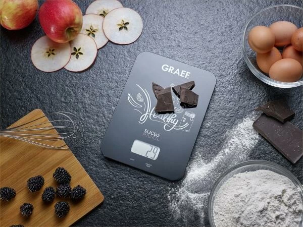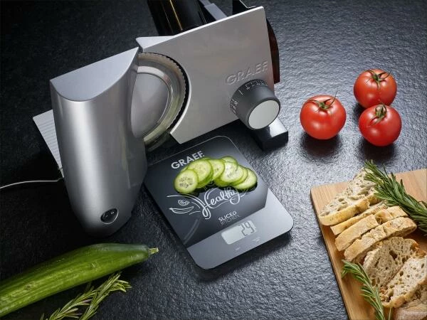 Platzieren Sie die flache GRAEF Waage direkt unter dem Allesschneider und Sie wissen sofort welche Menge geschnitten wurde. Ideal für die bewusste Ernährung und eine tolle Ergänzung auf der Arbeitsplatte. Das gut lesbare LCD-Display mit Sensortastenbedienung ist einfach zu Bedienen und nach der Nutzung können Sie die Glasoberfläche leicht reinigen. Durch die praktische Tara-Zuwiegefunktion können Sie alle Zutaten einzeln oder zusammen in einer Schüssel und bis zu 5 kg abwiegen.