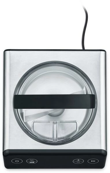 Eismaschine IM 700, Edelstahl-schwarz. Inklusive Eislöffel, Messbecher, Rezeptbuch. Von Softeis bis festes Eis, in 3 Stufen wird die Eiskonsistenz reguliert dank Cream Control. Mit zusätzlichem Joghurt-Programm. Herausnehmbarer Eiscremebehälter aus Edelstahl für bis zu 2,0 Liter Eiscreme oder Joghurt.