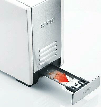Der Toaster TO 91 hat ein wärmeisoliertes Aluminiumdruckguß- / Edelstahlgehäuse und bietet neben elektronischer Regelung von Röstgrad, Defrost und Stoppfunktion auch auf mechanischer Seite beste Eigenschaften: der Bräunungsgradregler mit “Clic Clic” Funktion in 6 Stufen, die Nachhebevorrichtung, die lautlose Brotscheibenzentrierung, die Krümelschublade aus Edelstahl mit Push-Funktion sind nur einige Ausstattungsmerkmale.