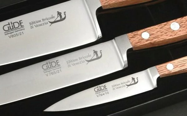 Güde Messer der Serie Briccole di Venezia werden aus bestem, rostfreiem Messerstahl in 50 Arbeitsgängen nach alter Solinger Tradition gefertigt. Die Edition BRICCOLE DI VENEZIA zeichnet sich durch das Griffholz aus original venezianischen Gondel-Pfählen (Briccole) aus.