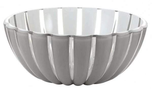 Guzzini Schüssel Grace in grau. Die kunstvoll elegant aussehende Schüssel aus Acrylglas zum ansprechenden Servieren von Speisen, wie z.B. Obst oder Salat.