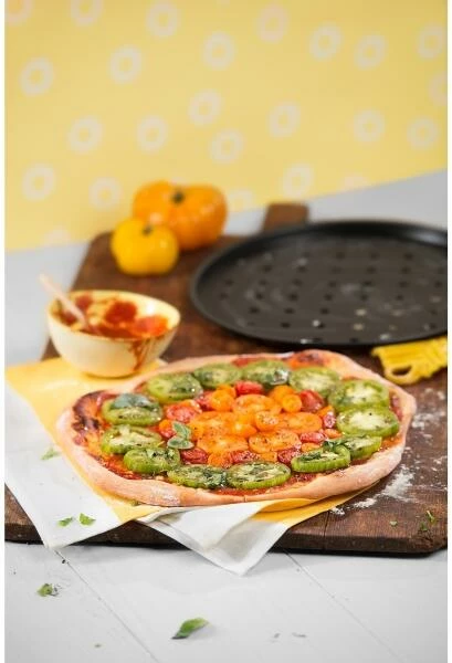 Kaiser Crossini Pizzaform mit Thermolochung für alle Pizzen mit einem Durchmesser bis 32 cm.