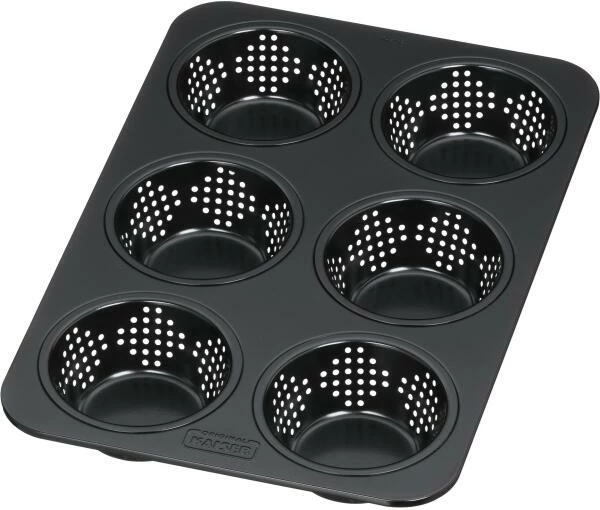 Knusprige Brötchen und Baguettes zu Hause selber backen – mit den Formen der Serie Inspiration von Kaiser gelingt das sicher. Dank der CrispTec Perforierung wird das Backwerk noch krosser, und die Krume bleibt schön weich. Der Boden und die Seiten der Brötchen- und Baguetteform sind perforiert, die heiße Luft zirkuliert besser, und Feuchtigkeit kann entweichen. Dadurch wird die Kruste knusprig und der Boden nicht weich. Die schwarzen Formen sind mit einer sauerteigbeständigen Antihaftbeschichtung versiegelt. Der Teig backt locker und erhält eine gleichmäßige Bräunung. Die Brötchen lassen sich leicht aus der Form lösen, ohne anzubacken. Die Brötchenform fasst Teig für sechs Brötchen, in der Baguetteform backen zwei Stangen gleichzeitig. Die Formen sind aus hochwertigem Stahl gefertigt und absolut formstabil. Sie werden per Handwäsche gereinigt.
