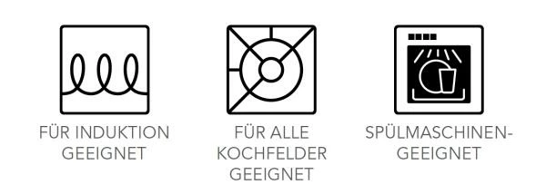 Spülmaschinen- und backofenfest bis 260°C, ist die Pfanne für alle Herdarten einschließlich Induktionsherde geeignet. Der magnetische Edelstahlboden sorgt auch bei Induktionsfeldern für eine optimale Leistung.