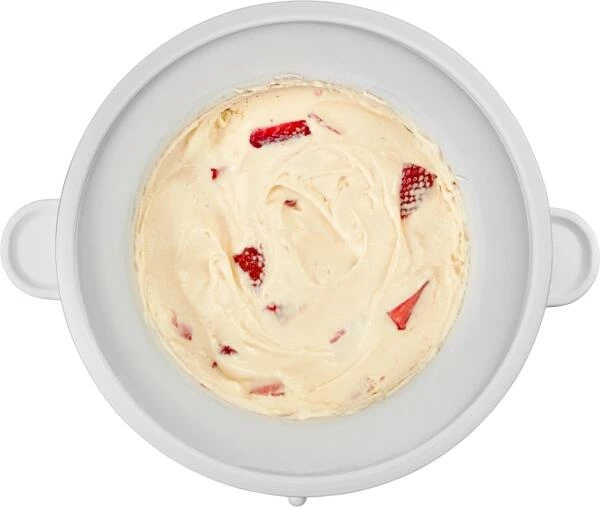 Zur direkten Zubereitung von Speiseeis mit weicher Konsistenz. Wenn Sie festeres Eis wünschen, stellen Sie die Eiscreme 2 bis 4 Stunden lang in einem flachen, luftdichten Behälter in den Gefrierschrank. Verwenden Sie die Eisschüssel sofort nach der Entnahme aus dem Gefrierschrank, in der sie mindestens 16 Stunden aufbewahrt wurde, da sie nach der Entnahme zu tauen beginnt. Die anfängliche Zutatenmenge sollte nicht mehr als 1,4 l betragen, um 1,9 l Eiscreme herzustellen.