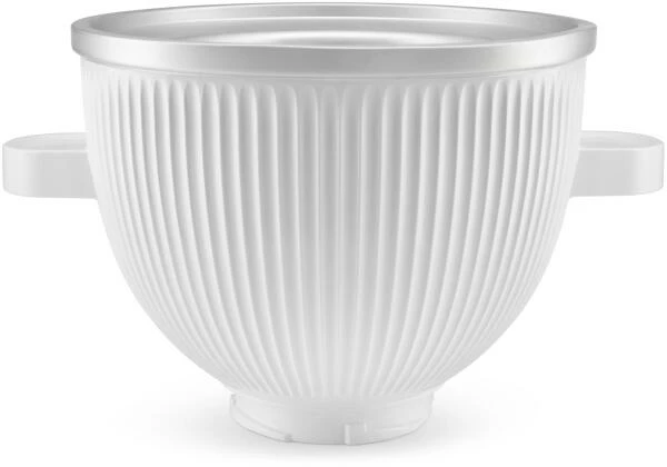 KitchenAid Eismaschine. Für bis zu 1,9 l Milch-, Frucht- und Softeis, Sorbet oder gefrorenen Nachtisch. Verbesserter Aufbau, neue Griffe und neu gestalteter Rührarm. Die Eisschüssel ist nach 16 Stunden im Gefrierschrank einsatzbereit. Optionales Zubehör für die