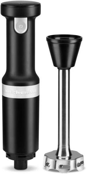 KitchenAid Kabelloser Stabmixer in matt schwarz. Der Mixer mit variablem Geschwindigkeitsregler. Mit wiederaufladbarem Akku und mit voller Bewegungsfreiheit in der Küche ohne Kabelsalat. Mit ca. 2h Akku-Laufzeit. Inklusive Zubehör.