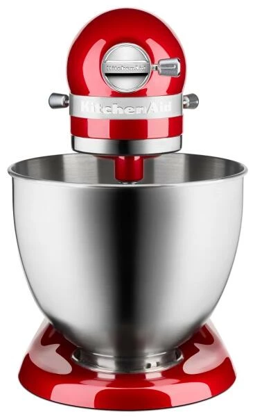 Die Mini-Küchenmaschine von KitchenAid ist 25 Prozent leichter und 20 Prozent kleiner als seine klassischen Vorgänger. Ausgestattet mit dem typischen Kippmotor, Edelstahl-Schüssel mit 3,3 Liter Füllmenge und 250 W Leistung per Gleichstrommotor mit Direktantrieb steht sie den klassischen Küchenmaschinen jedoch in Nichts nach.