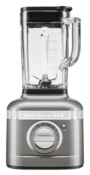 Standmixer Artisan K400 in medallion silber. Hochwertiger Standmixer mit neuartigem 3-teiligem Mix-System, bestehend aus einem 1,5 PS starkem Motor, einer einzigartig asymmetrischen Klinge und einem 1,4 L Glas-Behälter mit Riffelungen und Skala.