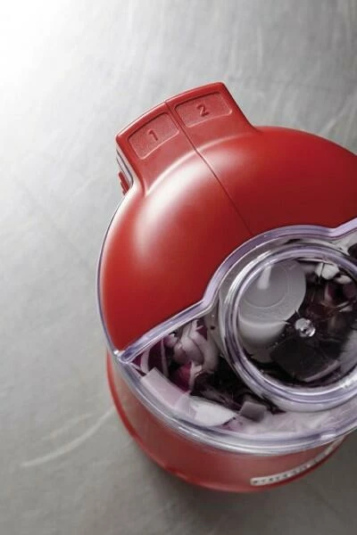 KitchenAid ist ideal zu Garnierung und Verfeinerung von Gerichten. Darüber hinaus eignet er sich dazu, Pasten wie z. B. Pestos oder Guacamole zuzubereiten. Dieses Multitalent von KitchenAid kann dank oben angebrachter Tasten bequem mit einer Hand bedient werden. Die zwei Geschwindigkeitsstufen bieten bei jeder Aufgabe optimale Ergebnisse: Stufe 1 ist für normales Hacken gedacht. Stufe 2 ist zum schnellen Pürieren geeignet. Fügen Sie bei Bedarf flüssige Zutaten über die Deckelöffnung hinzu, beispielsweise Olivenöl.