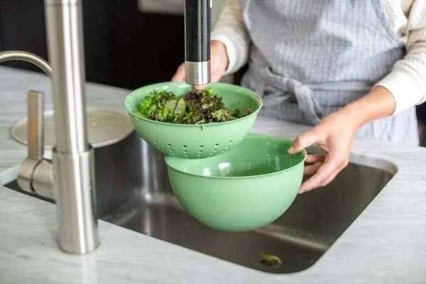 koziol Schüssel PALSBY in grün. Der Seiher aus recyceltem Kunststoff ist made in Germany. In 2 Größen verfügbar.