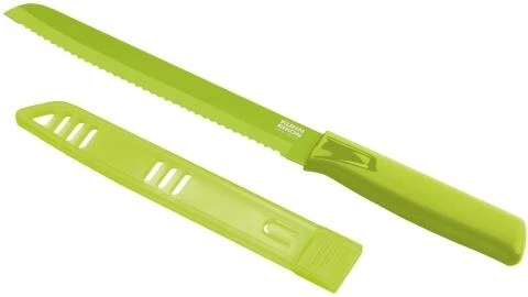 Brot gehört in Mitteleuropa zu den beliebtesten und vielseitigsten Backwaren überhaupt. Vom Weissbrot bis zum Vollkornbrot reicht eine breite Produktpalette, die für den individuellen Genuss über den ganzen Tag hinweg sorgt. Schön, wenn solches Brot auch perfekt geschnitten auf den Tisch kommt. Mit dem Colori 1 Brotmesser von Kuhn Rikon ist das kein Problem. Die spezielle Zahnung der langen Klinge und ein ausgefeilter Schliff sorgen dafür, dass Scheibe für Scheibe sauber vom Brotlaib geschnitten werden kann. Auch wenn auf den ersten Blick ein Brotmesser dem anderen ähnelt, gibt es doch auch hier die feinen Unterschiede, die aus einem guten Brotmesser ein sehr gutes Messer machen. Dazu gehört die Breite der Klinge ebenso wie das verarbeitete Material der ergonomisch ausgeformte Griff und natürlich der spezielle Schliff.