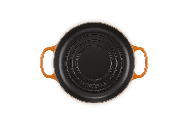 Le Creuset-Branding auf dem frisch gebackenen Produkt komplettiert.