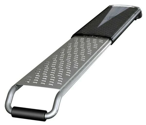 Lurch Razortech Classic Duo-Reibe fein/mittel. Mit zwei Reibeflächen in Fein und Mittel ist die Duo-Reibe ein Profi-Gerät für den schnellen Einsatz. Die feine Schneidefläche eignet sich hervorragend für Zitrusfrüchte, Parmesan, Knoblauch etc.; die gröbere Hälfte z. B. für Hartkäse und Gemüse.