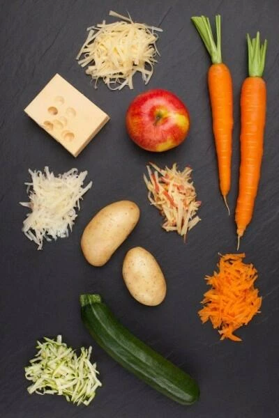 - Fingerschutz erleichtert das Reiben von kleinen Stücken und hält Finger fern von Schneidekanten