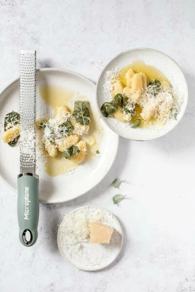 Das Reibergebnis ist sehr fein und ideal für alles, was fein gerieben werden soll. Zitrusfrüchten lassen sich besonders gut abreiben. Auch Käse und Gewürze, wie etwa Knoblauch, Ingwer und Muskat, lassen sich bestens zerkleinern. Geformt wie eine Feile wird die Microplane Reibe Premium von Profi- und Hobbyköch*innen gleichermaßen geschätzt.