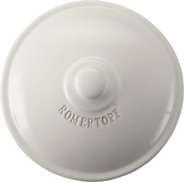Römertopf Brot-Back-Topf rund, weiß. Brot-Back-Topf rund zum Backen von bis zu ca. 1.500g Backgut. Es gibt für Brot kein besseres Material als Naturton. Ihr Brot wird durch den gewässerten Deckel von einer Dampfglocke umhüllt und somit optimal mit Feuchtigkeit versorgt.