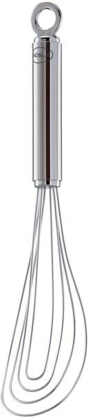 Elastizität, Form, Stärke und Länge der Drahtrührgeräte von Rösle sind perfekt auf die Aufgabenbereiche abgestimmt. Die Verankerung der Drähte im handlichen Rundgriff ist stabil und wasserdicht. Die ausgewogene Gewichtsverteilung erleichtert das Rühren. Das neuartige Design vereinfacht die Reinigung. Der praktische Aufhängering sorgt für Ordnung in der Küche. Die Verwendung von Edelstahl 18/10 garantiert Geschmacks- und Geruchsneutralität und eine nahezu unbegrenzte Lebensdauer.
