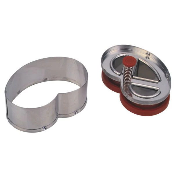 Mit dieser Ausstechform können Sie ganz einfach Ober- und Unterteil der beliebten Linzer-Plätzchen ausstechen und mit dem integrierten Auswerfer leicht und sicher auf das Backblech bringen. Zum Ausstechen des Linzer-Unterteils (und zum Reinigen) könn en Sie die Ausstechform in drei Teile (Innenteil, Außenring und Halter) zerlegen. Mit dem Außenring können Sie nun die Unterteile für die Linzer-Kekse ausstechen. Beide Teile nun backen und mit etwas Gelee, Marmelade, Zuckerguss oder Nussnougatcreme aufeinandersetzen – fertig.