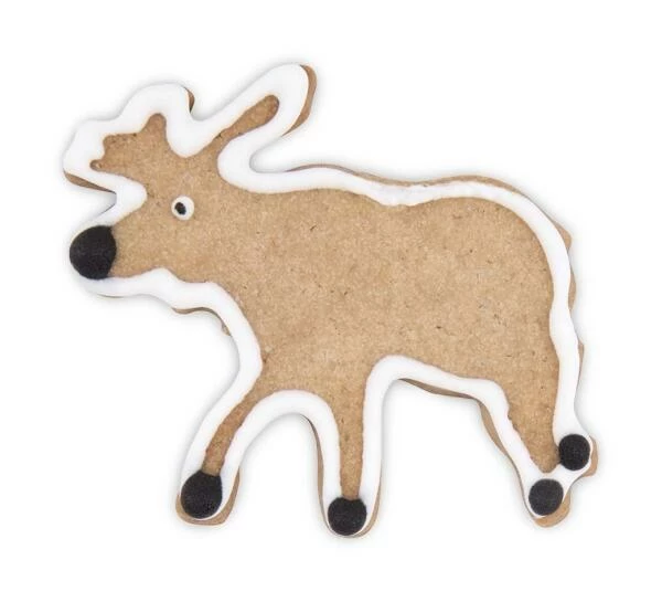 Lustiger Elch auf Wanderschaft. Für schmackhafte Elch-Kekse oder zum Basteln in der Adventszeit.