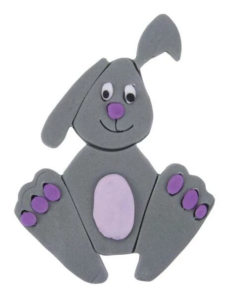 Der ist ja niedlich! Unser Hase hat ganz große Pfoten, ein Schlappohr und ein freundliches Gesicht.