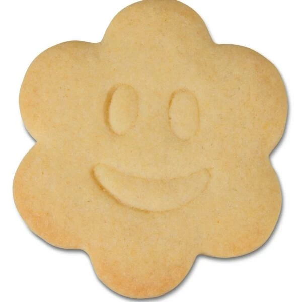 Gut gelaunt: Im Set finden Sie einen Blumen-Ausstecher mit geprägtem fröhlichen Lachen und einen Konturen-Ausstecher.