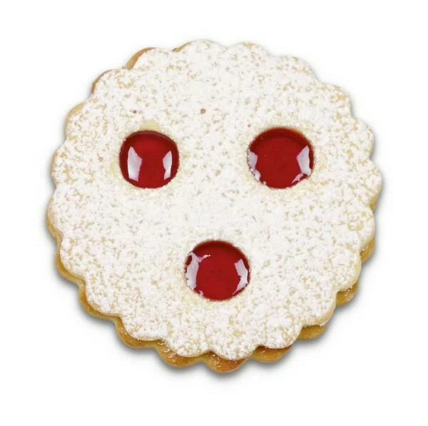 Mit dieser Ausstechform können Sie ganz einfach Ober- und Unterteil der beliebten Linzer-Plätzchen ausstechen und mit dem integrierten Auswerfer leicht und sicher auf das Backblech bringen. Zum Ausstechen des Linzer-Unterteils (und zum Reinigen) könn en Sie die Ausstechform in drei Teile (Innenteil, Außenring und Halter) zerlegen. Mit dem Außenring können Sie nun die Unterteile für die Linzer-Kekse ausstechen. Beide Teile nun backen und mit etwas Gelee, Marmelade, Zuckerguss oder Nussnougatcreme aufeinandersetzen – fertig.