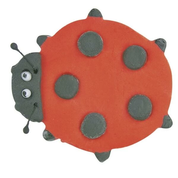 Putziger Marienkäfer – unser Ausstecher prägt die typischen Punkte auf den Deckflügeln bereits vor.