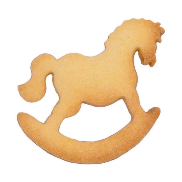 Unser Ausstecher prägt bei dem kleinen Schaukelpferd schon viele Details vor, die nach dem Backen liebevoll dekoriert werden können.
