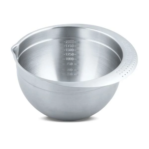 Der Clou bei dieser hochwertigen Rührschüssel sind die eingearbeiteten Markierungen für das einfache Ablesen der gewünschten Füllmenge. Die Handhabung wird durch einen Griff und eine Ausgießhilfe erleichtert.