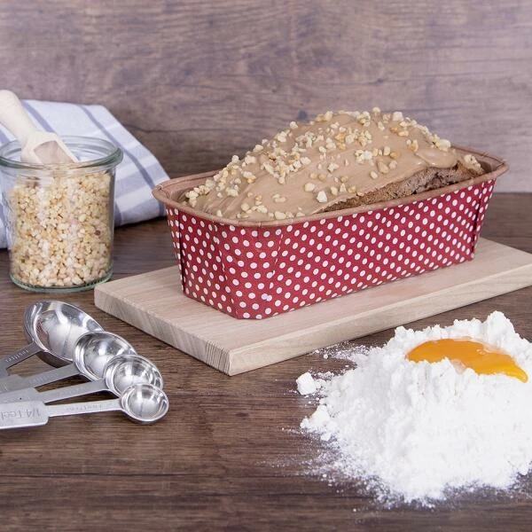 Frisch und frech gepunktet! Die kleinen Einweg-Kastenformen sind ideal für Anlässe, bei denen Sie einen kleinen Kuchen mitbringen wollen.