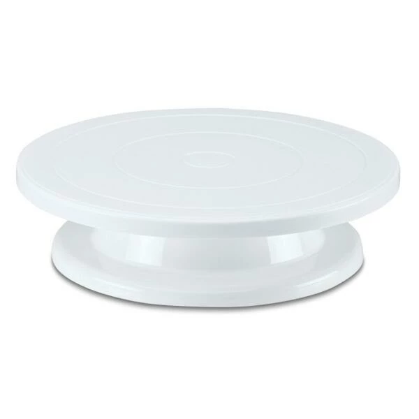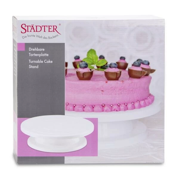 Mit der drehbaren Tortenplatte können Sie Torten von allen Seiten bearbeiten, ohne lästiges Schieben und Zerren von Unterlagen – Torten zaubern leicht gemacht.