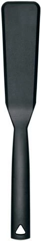 Stabile und hoch temperaturfeste Palette für beschichtete Pfannen. Der hochwertige Spezialkunststoff ist bis zu 270° C hitzefest, so dass angeschmolzene Kanten der Vergangenheit angehören. Die schmale Form mit abgeschrägten Kanten ist ideal zum Lösen von Pfannkuchen und Crepes und zum Wenden kleinerer Lebensmittel. Das massive Griffdesign mit Aushängeloch liegt fest und bequem in der Hand. Eine kleine Nut auf der Rückseite des Griffes verhindert, dass der Wender in Schüsseln oder Pfanne rutschen kann. Spülmaschinengeeignet.